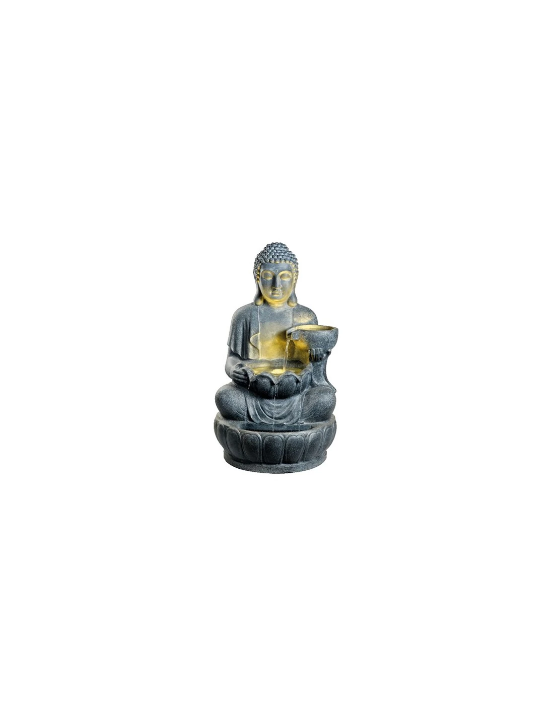 Apportez un esprit zen à votre jardin avec cette grande fontaine d’extérieur Bouddha, lumineuse, d’une hauteur de 94 cm.