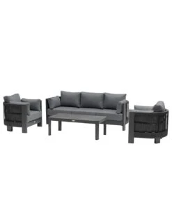 Salon De Jardin Gili 4 Places – Aluminium Et Texaline – Graphite / Anthracite Chiné