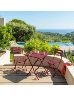 Table De Jardin Cargo 128×90 Cm En Métal Rectangle Pliante – Cerise Noire